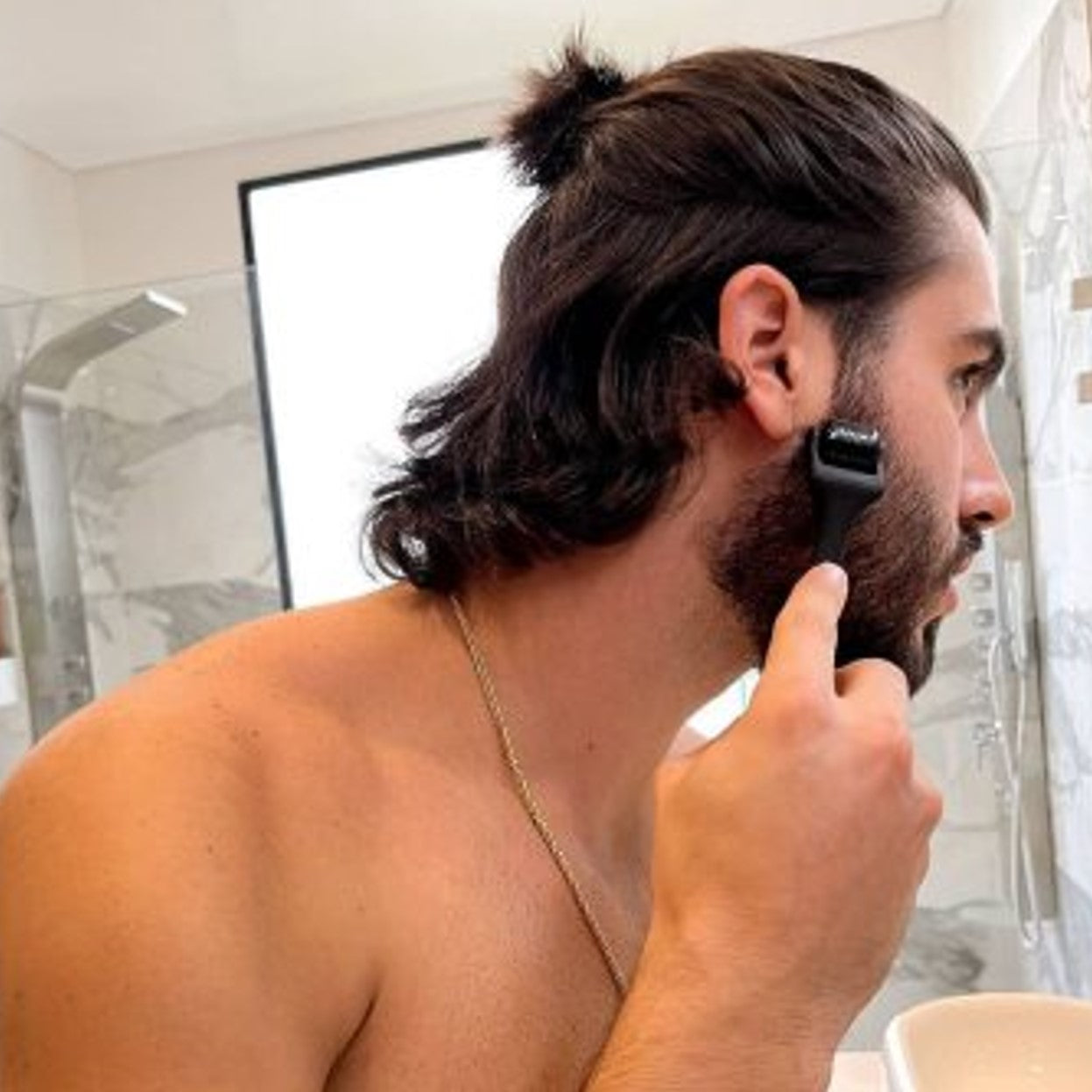Mikroneedling ist für alle Hauttypen geeignet, von sehr heller bis zu dunkler Haut. Es gibt jedoch einige wichtige Gegenanzeigen zu beachten. Schwangere Frauen, Personen, die Antikoagulantien oder entzündungshemmende Medikamente einnehmen, sowie Personen mit Autoimmunerkrankungen oder Hautausschlägen (wie schwere Akne oder Herpes) sollten den Beard-Roller unbedingt meiden.